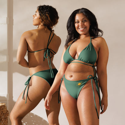 Soyez prête à faire sensation cet été avec notre bikini à cordon recyclé : une touche d'élégance durable pour vos baignades et moments de détente.
