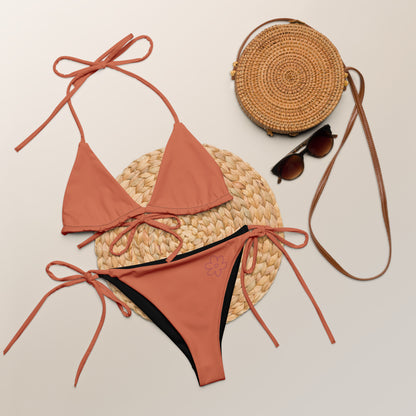 Soyez prête à faire sensation cet été avec notre bikini à cordon recyclé : une touche d'élégance durable pour vos baignades et moments de détente.