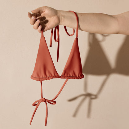 Faites des vagues cet été avec notre haut de bikini rembourré, conçu non seulement pour flatter votre silhouette mais aussi pour respecter l'environnement. Fabriqué à partir de polyester doux recyclé, ce haut de bikini combine style et conscience écologique.
