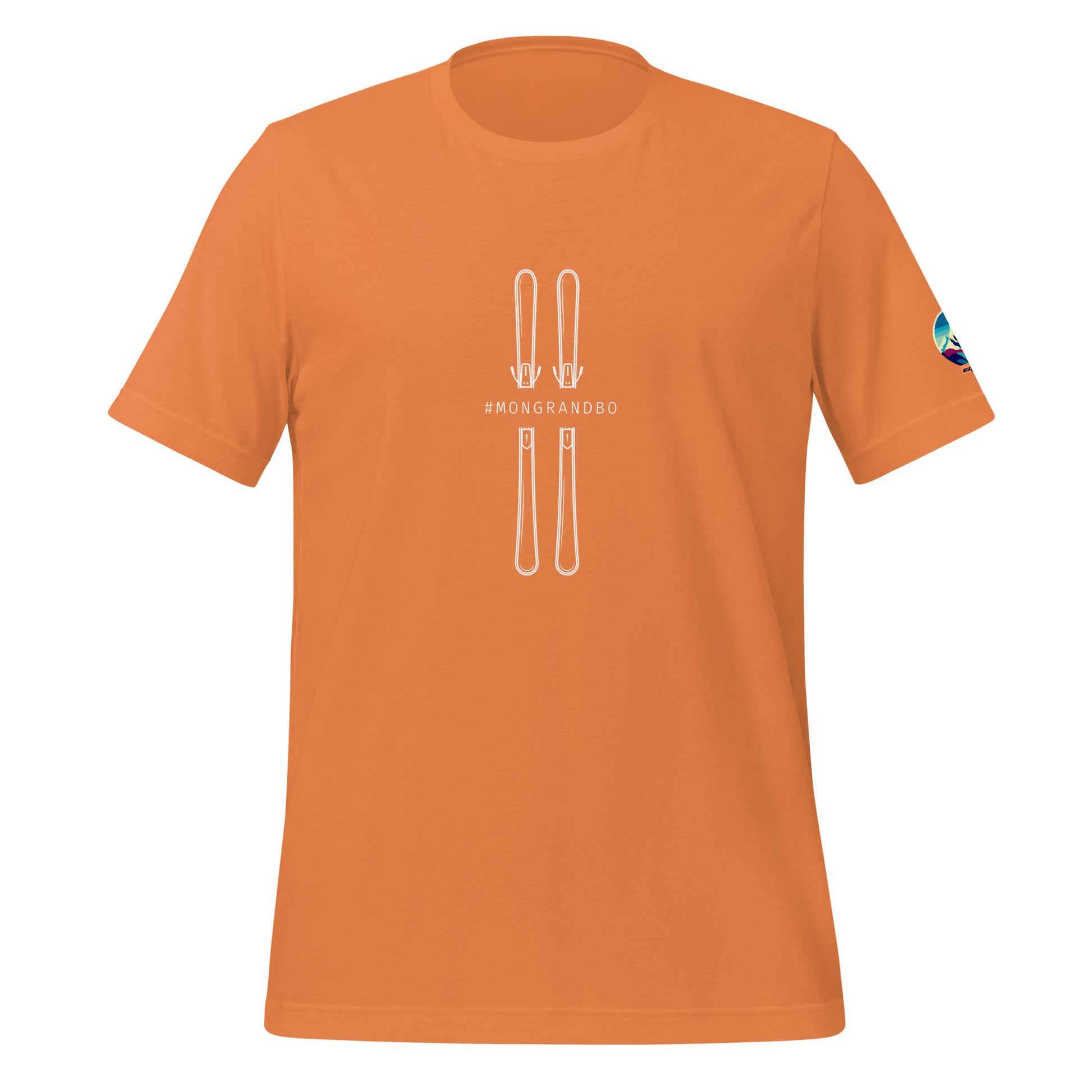 Design Inspiré et Personnalisé : Le T-shirt se distingue par un logo unique, inspiré des montagnes emblématiques du Grand Bornand, ajoutant une dimension artistique et significative.